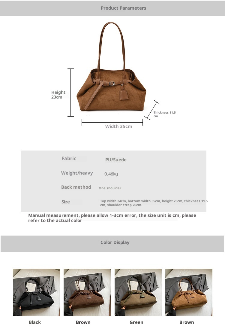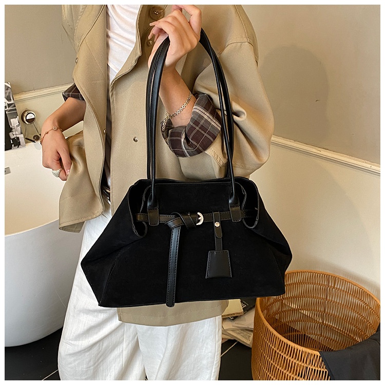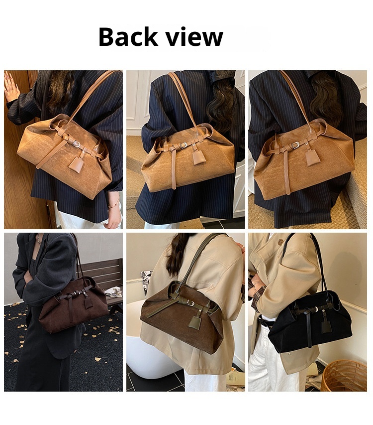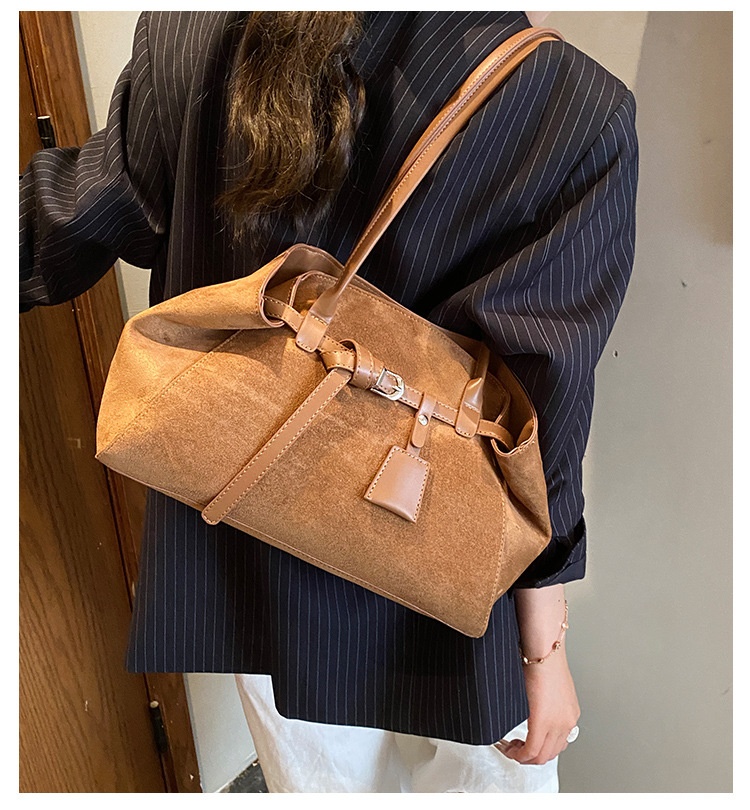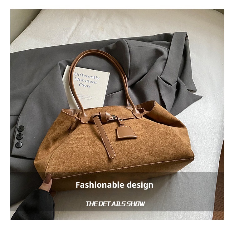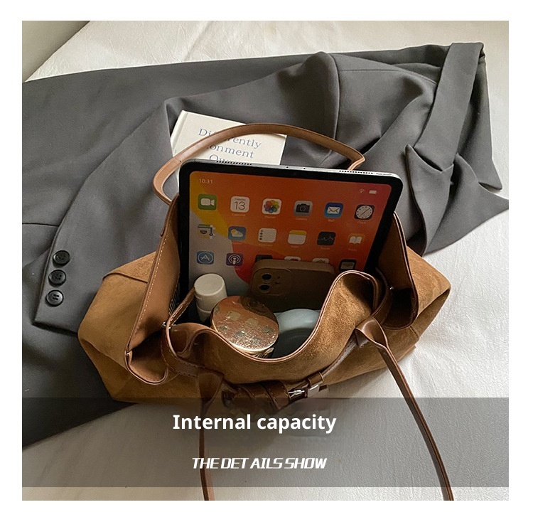Retro High-grade Matte Large Capacity Tote Bag Suede Shoulder Commuter Bag