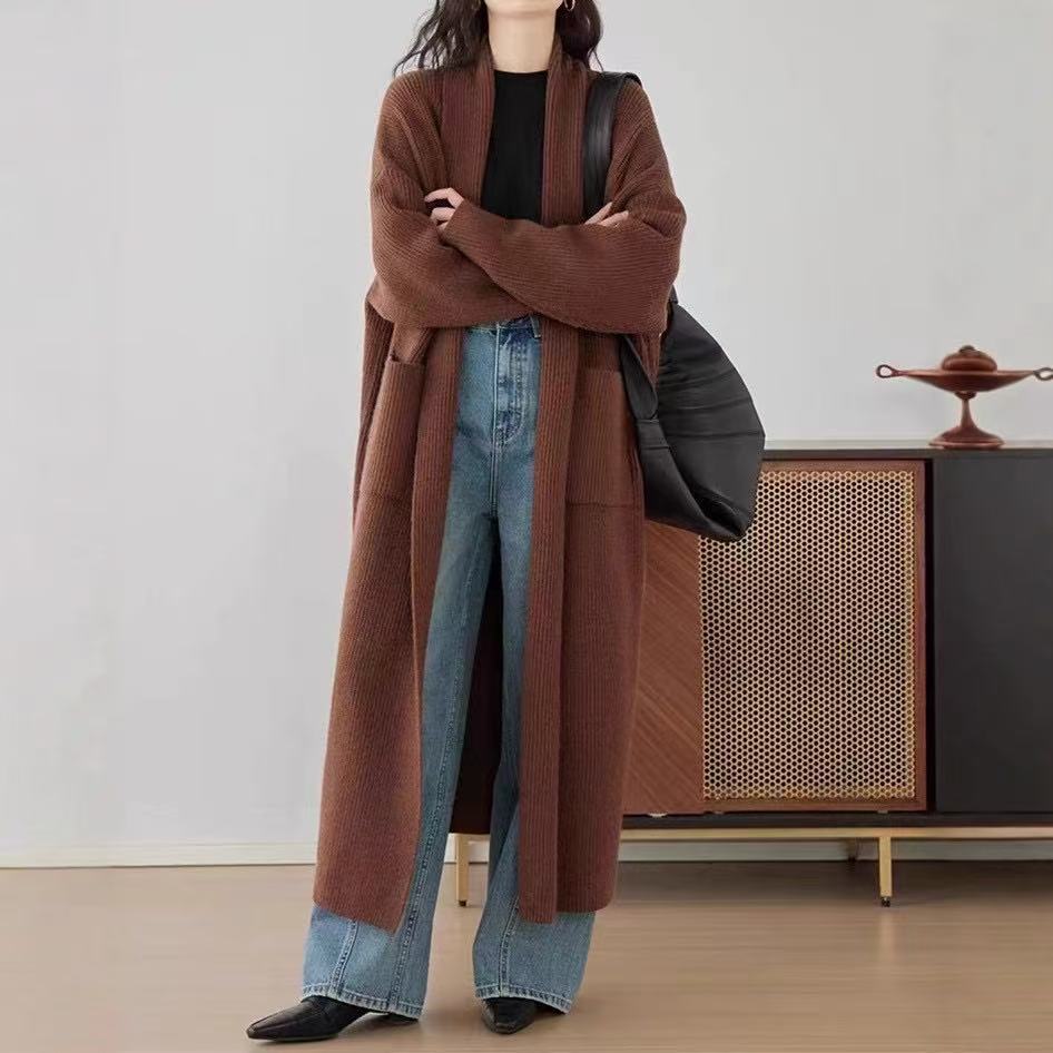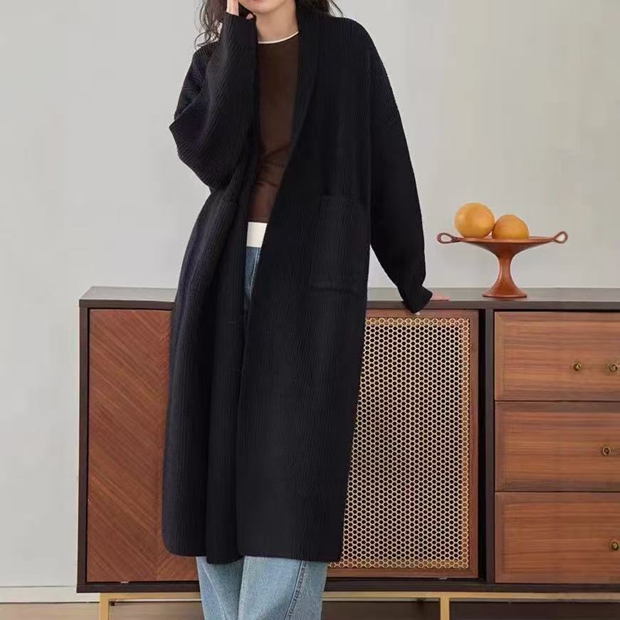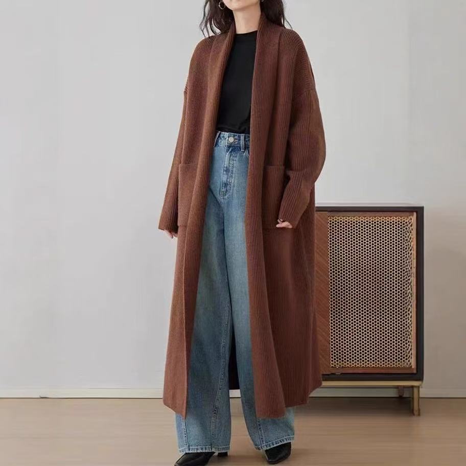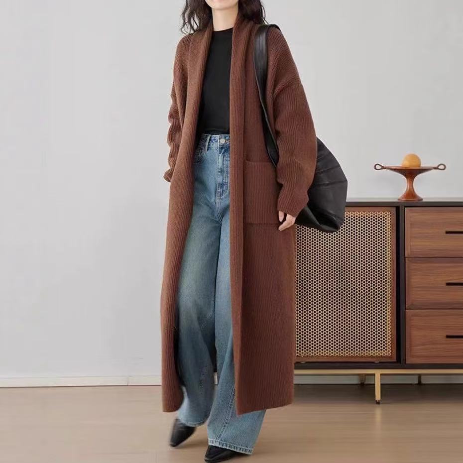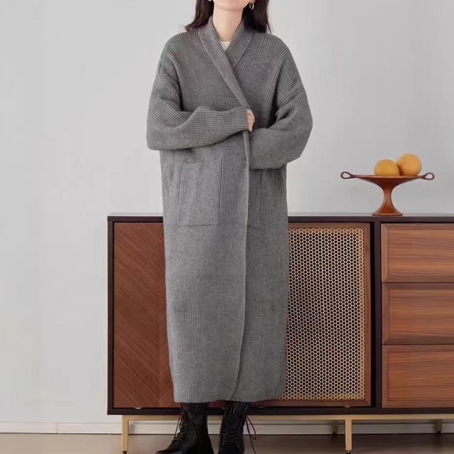 Women's Elegant Long Below The Knee Sweater Cardigan