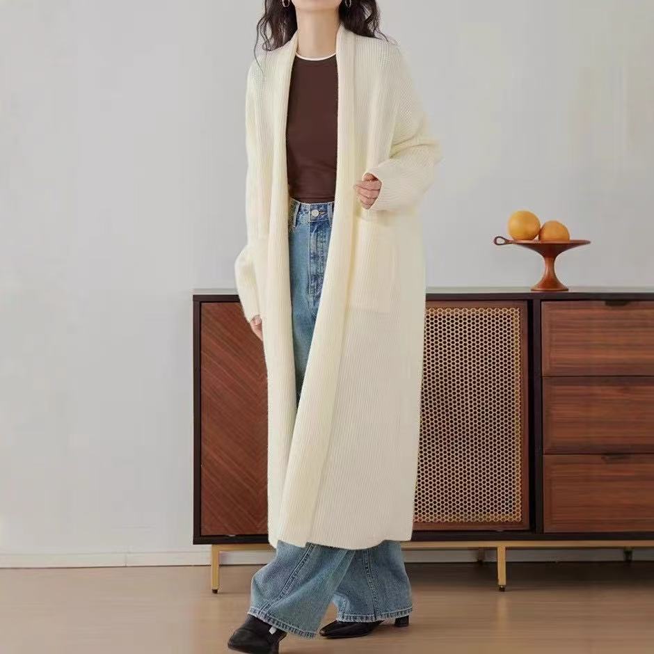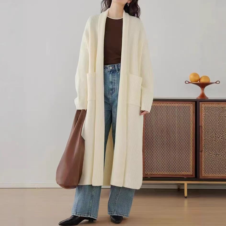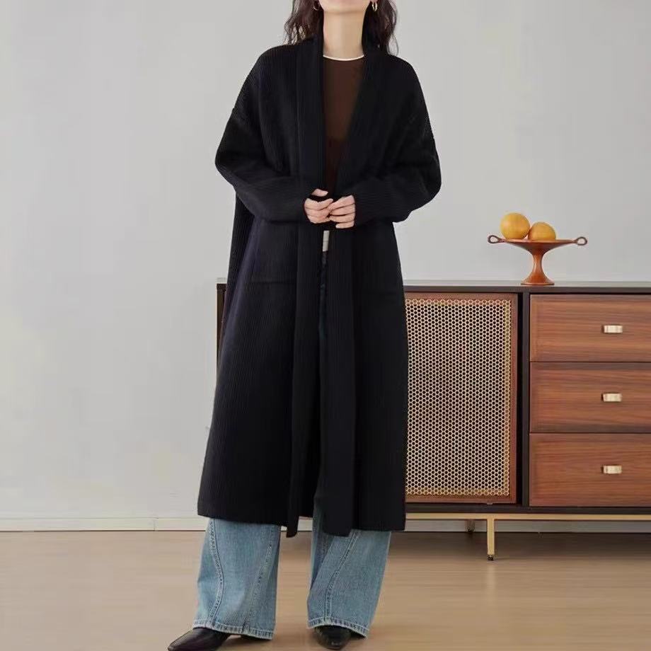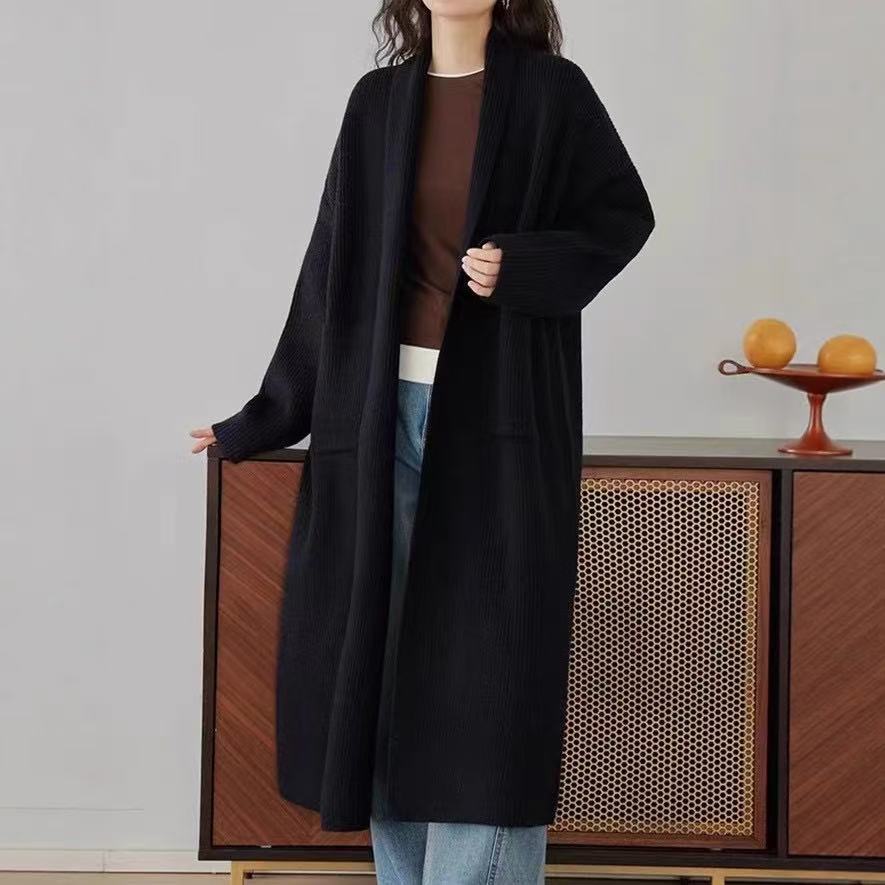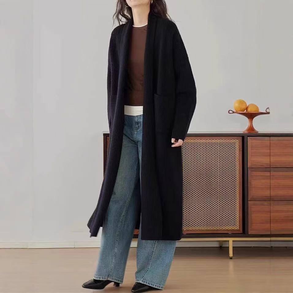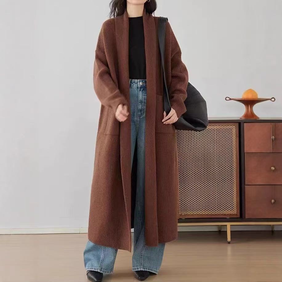 Women's Elegant Long Below The Knee Sweater Cardigan