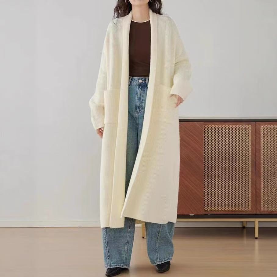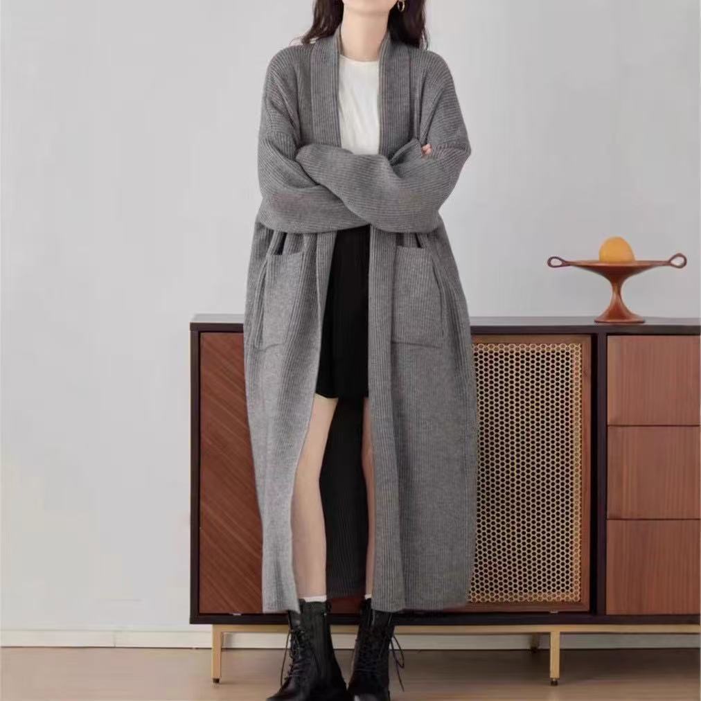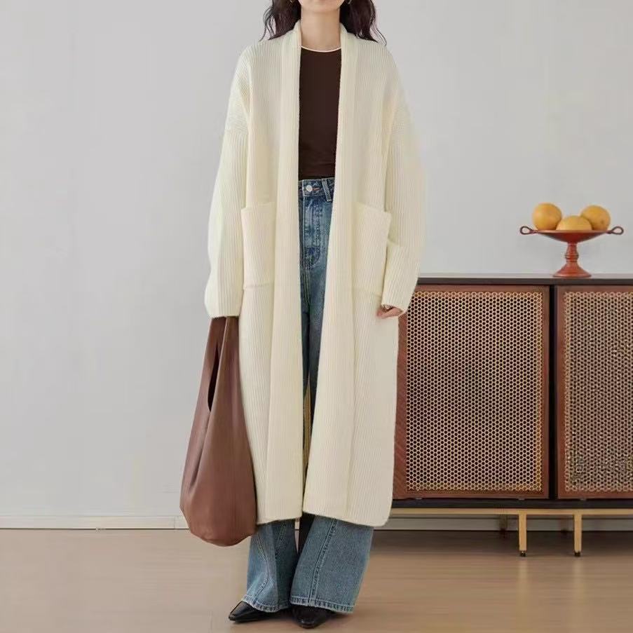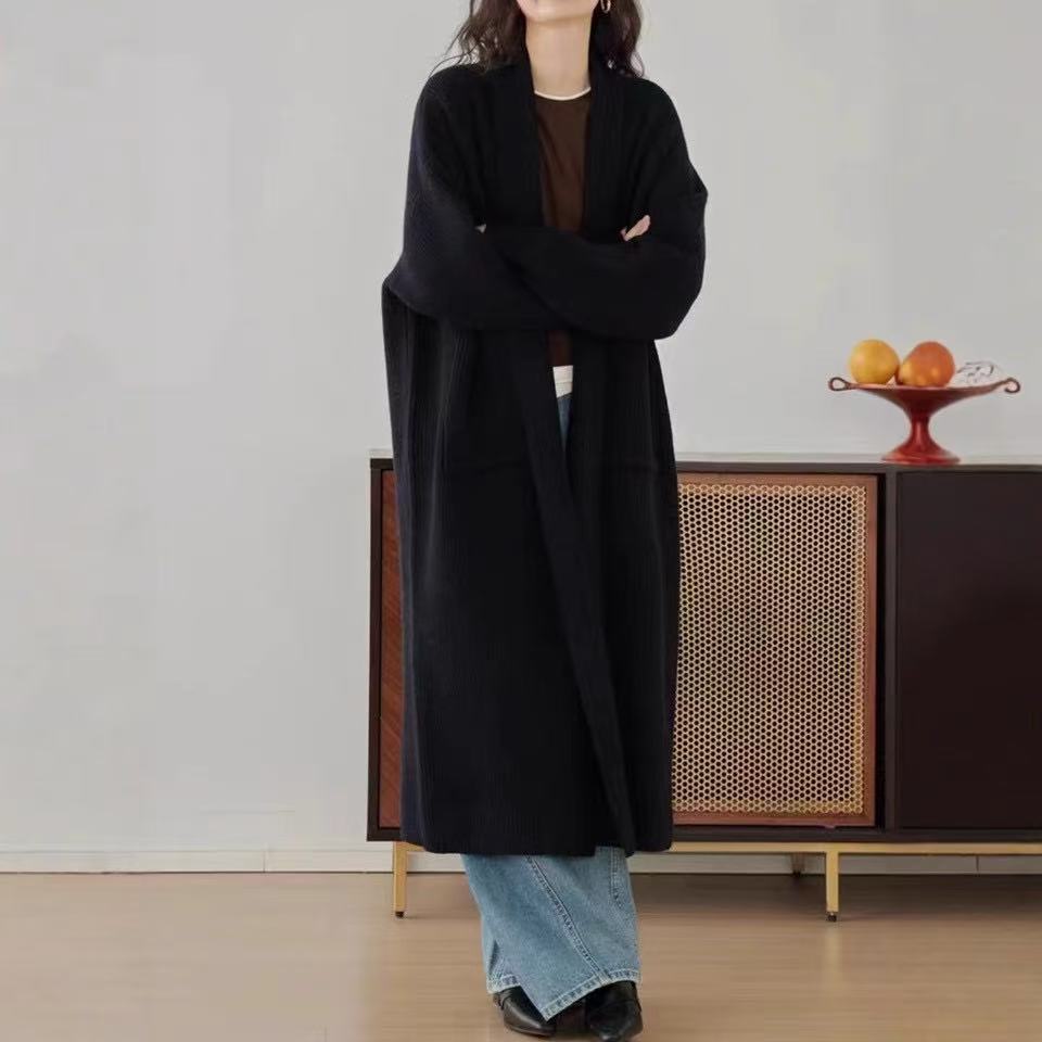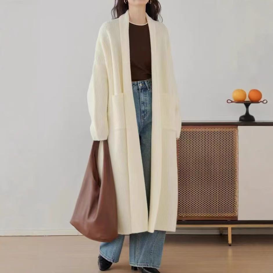 Women's Elegant Long Below The Knee Sweater Cardigan